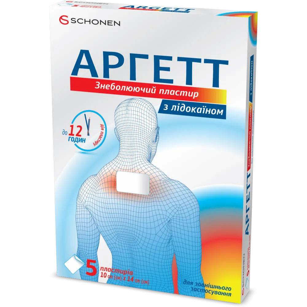 Гідрогелевий пластир Аргетт з лідокаїном допомагає полегшити біль у м’язах та суглобах, що виникає при розтягненні та запаленні м’язів та зв’язок, травматичного чи іншого походження. Застосовується при болю в спині та суглобах.